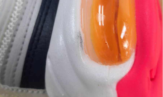 瑕疵情况:右鞋外侧胶印 鞋舌污渍