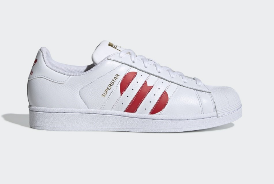 推荐理由:adidas Superstar情人节以经典的adidas Superstar为设计蓝本,在鞋侧加入了红心设计元素,凸显出情人节主题。