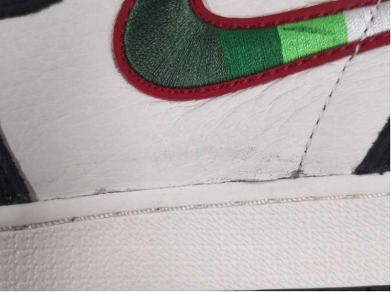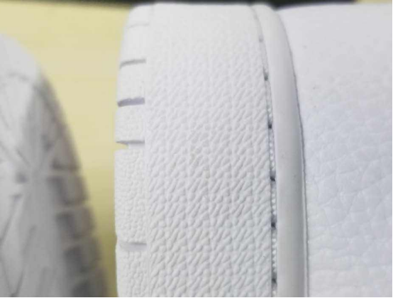 瑕疵情况:两鞋长短差异 左鞋外侧做工瑕疵