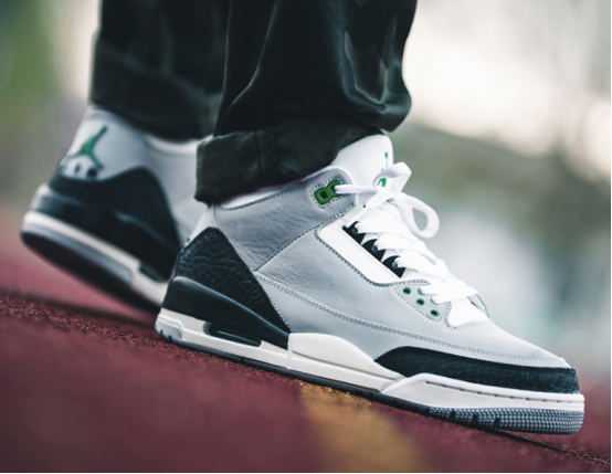 推荐理由:Air Jordan 3 Retro叶绿素沿袭了AJ3的经典设计,鞋面的黑色爆裂纹搭配灰白色鞋面彰显出独特气质。