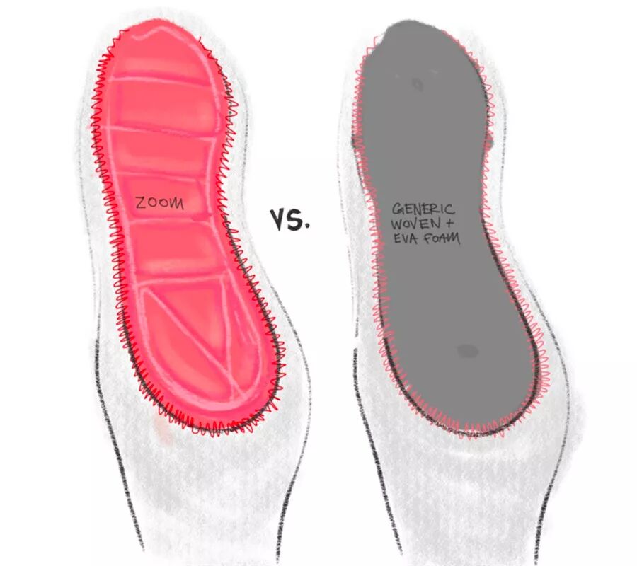 当耐克前掌不用Zoom,放到了后掌的时候,耐克又说:“为了获得良好的启动速度,我们把Zoom Air放在了后掌的位置”。你们都是带明星,你们说的都对。