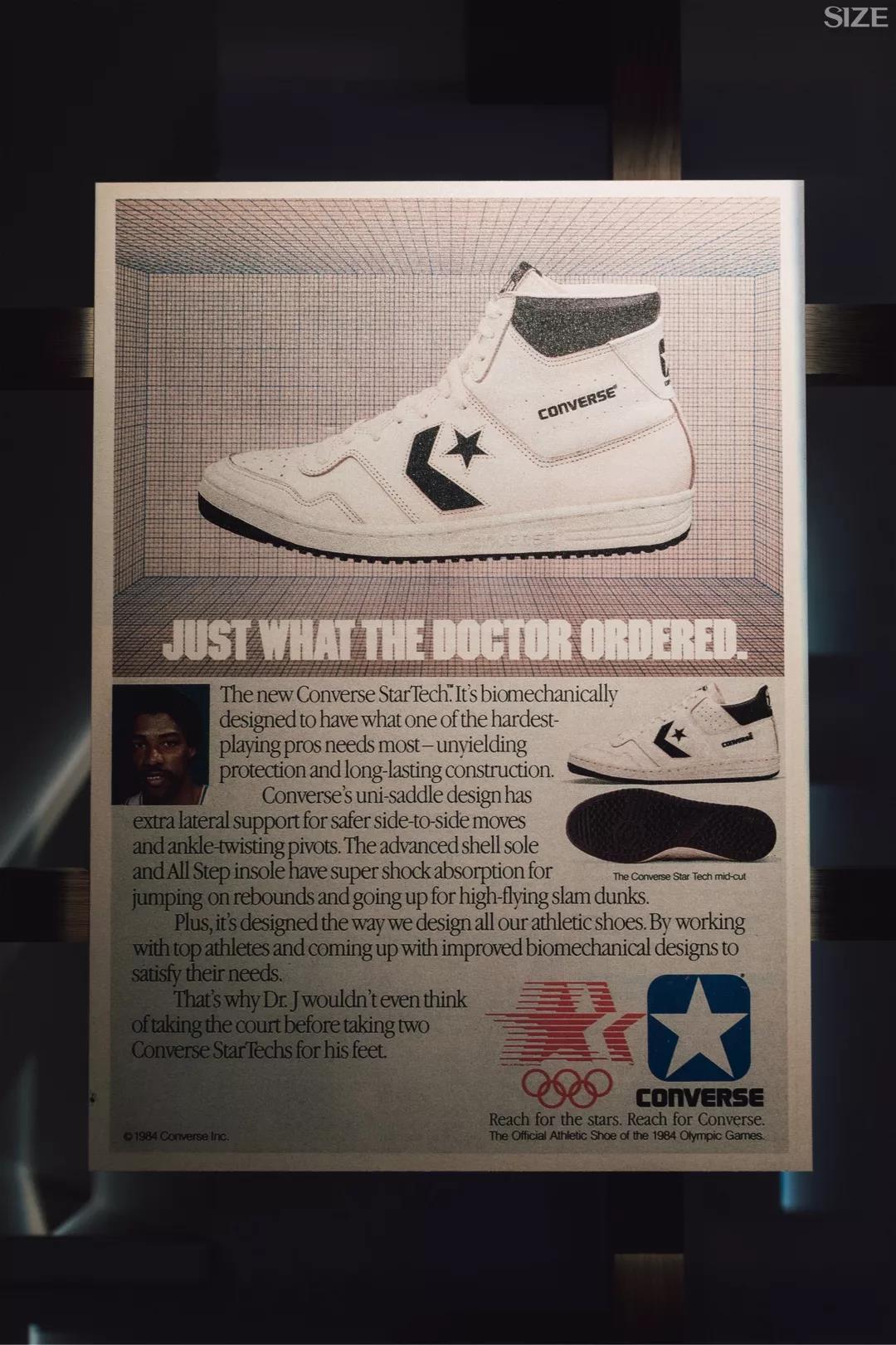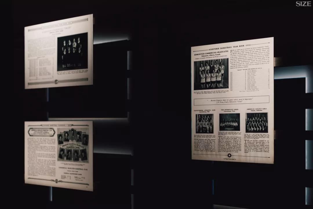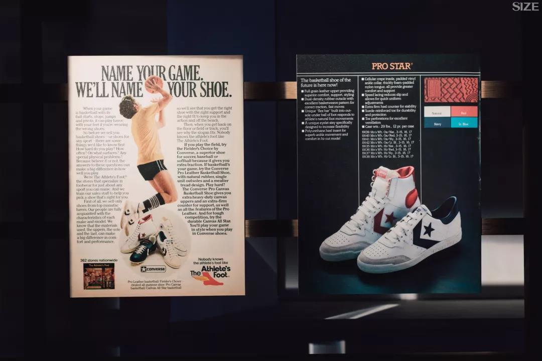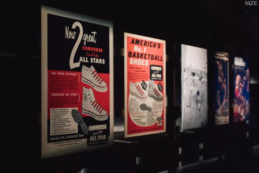 走进发布会的现场,整体的环境为到场的人们带来的是一种沉浸式的体验,精心调试后的光线使得活动现场更像是一个博物馆的展厅,而在这个展厅中展示的,正是Converse篮球鞋自诞生以来最为辉煌且重要的鞋款。除了这些珍贵的Converse Archive篮球鞋,现场还陈列大量着Converse推出过的老海报以及Chuck Taylor亲手做的剪报,为到场的参与者补上了一节珍贵的历史课。从当时这些海报以及Converse制作的宣传册上,我们也能够看出Converse一直以来对于自己的篮球鞋都有着相当足的信心,同时,在NBA的浩瀚长河中,选择Converse的超级巨星亦不在少数。