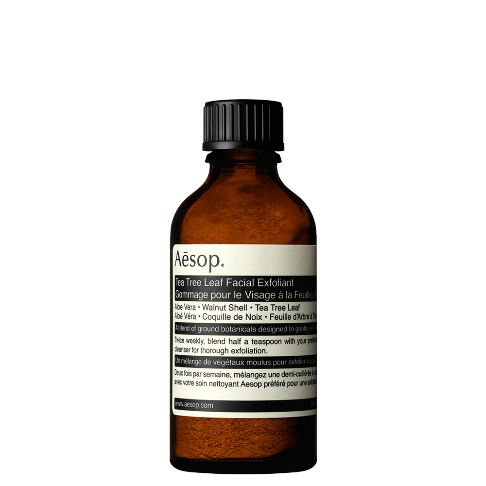 揉合茶树叶与果仁壳粉末及净化黏土,搭配 Aesop任意一种洁面产品一起使用,可温和、彻底地清除皮肤