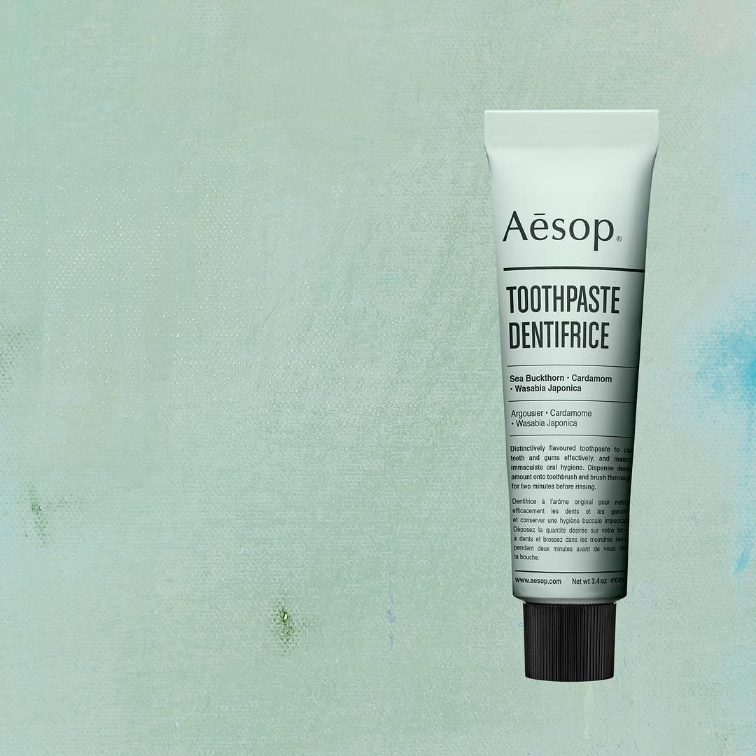 Aēsop牙膏含八角茴香、绿薄荷和丁香精油的无氟配方为顾客带来独特香气,并加入豆蔻及山葵以解决敏感的口腔异味问题,配合沙棘作缓解不科学刷牙方法造成的牙龈肿痛,维护口腔卫生。漱口水亦是选用无氟配方,同样含有八角茴香精油,带来自然的享受。