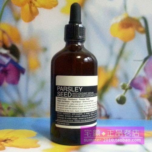「香芹籽抗氧化精华」又细分为香芹籽抗氧化眼部精华,香芹籽抗氧化眼霜等,其中富含高浓度抗氧化成分能有效软化肌肤表层,提升肌肤防护力。其中凝露质地是专为对乳霜保湿产品反感的顾客所设计。使用时先洁面,之后使用Aēsop调理液,再将精华滴于掌心,均匀涂抹于面部。坚持使用可改善皮肤老化,黯淡无光等皮肤问题。