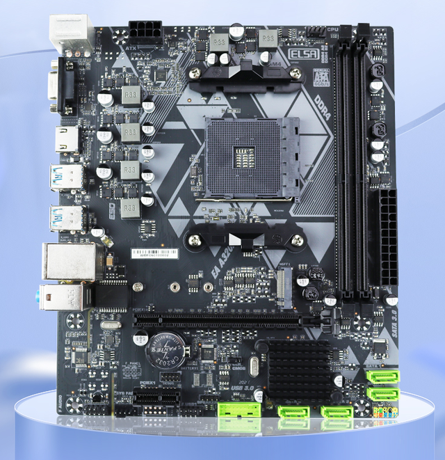 艾尔莎A320M-E是一款基于A320芯片组所打造的主板,它是标准的M-ATX规格板型,CPU方面可以支持AM4的锐龙1~3代处理器,并提供4+2相1上2下排列的八爪鱼MOS供电。在接口与插槽方面,艾尔莎A320M-E提供有DDR4*2、NVMe M.2*1、PCIe 3.0 x16*1、PCIe 3.0 x1*1、SATA 3.0*4、PS/2*2、VGA*1、HDMI*1、USB 3.0*4、USB 2.0*2、千兆LAN口*1以及3.5mm音频口*3,整体配备一应俱全,非常适合游戏或办公装机需求使用。