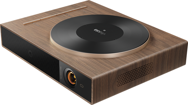 悦己M1则采用了全新的设计语言,薄薄的机身,不到一张A4纸的大小;整体就像一本大书,可以轻松放进普通的背包中,方便随时随地投出高清大屏。特别的是,悦己M1的顶部是一个仿黑胶唱片的设计,这让它更像是一台复古的木制唱机,别致的造型让人爱不释手。