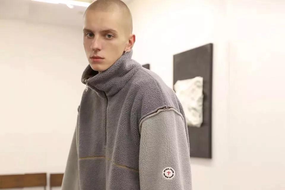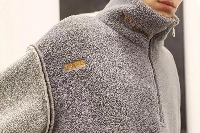 这款外套采用摇粒绒面料,立体剪裁,肩部反车线设计十分特别,高密度刺绣和摇粒绒浑然一体。撞色设计增添层次感,立领半拉链设计更显复古简约风格。