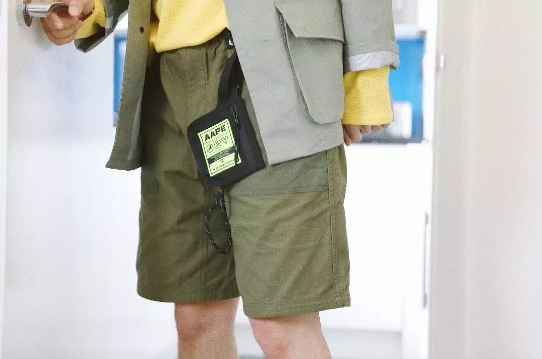 下半身我选了一条AAPE的军绿色短裤,喜欢它配了一个小挂包,有趣味性之外我还可以把伦敦的无处安放的硬币装在里面,实用!