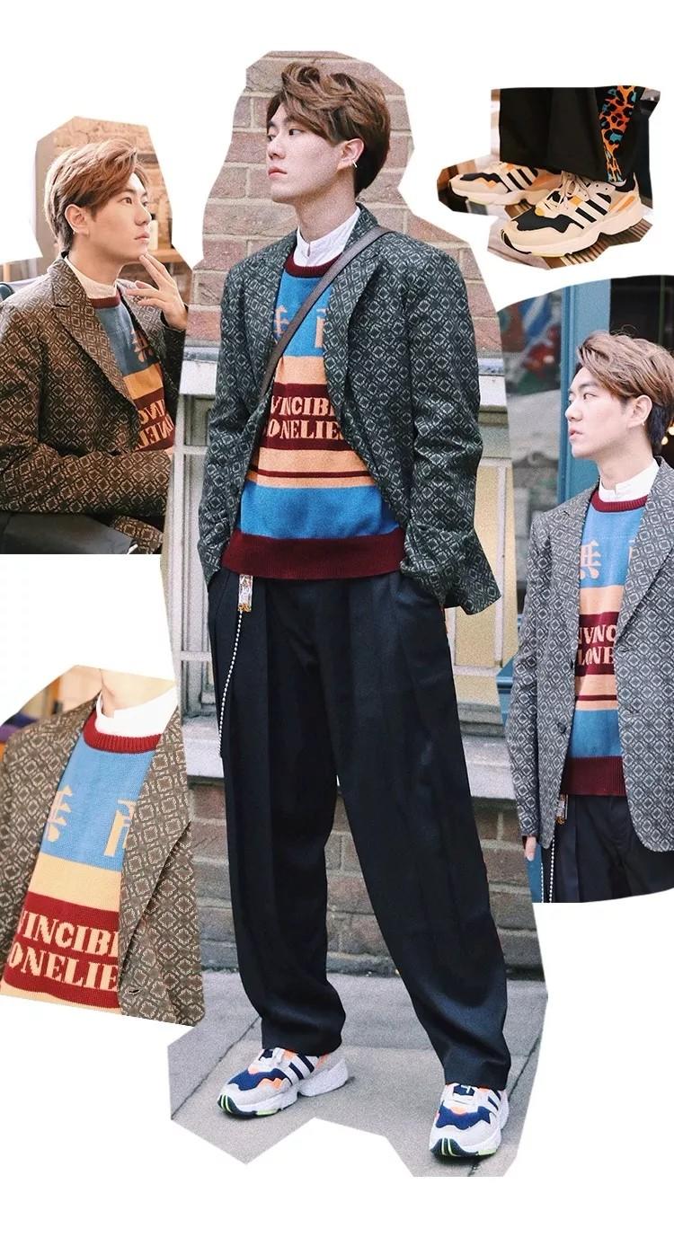 我给它搭配了一件色系丰富的TEENTEAM毛衣背心,上面大大的「无敌」字样,看似简单的黑裤子侧边有一条彩色的豹纹贴边,让整套穿搭多了一些“夸张的性格”!