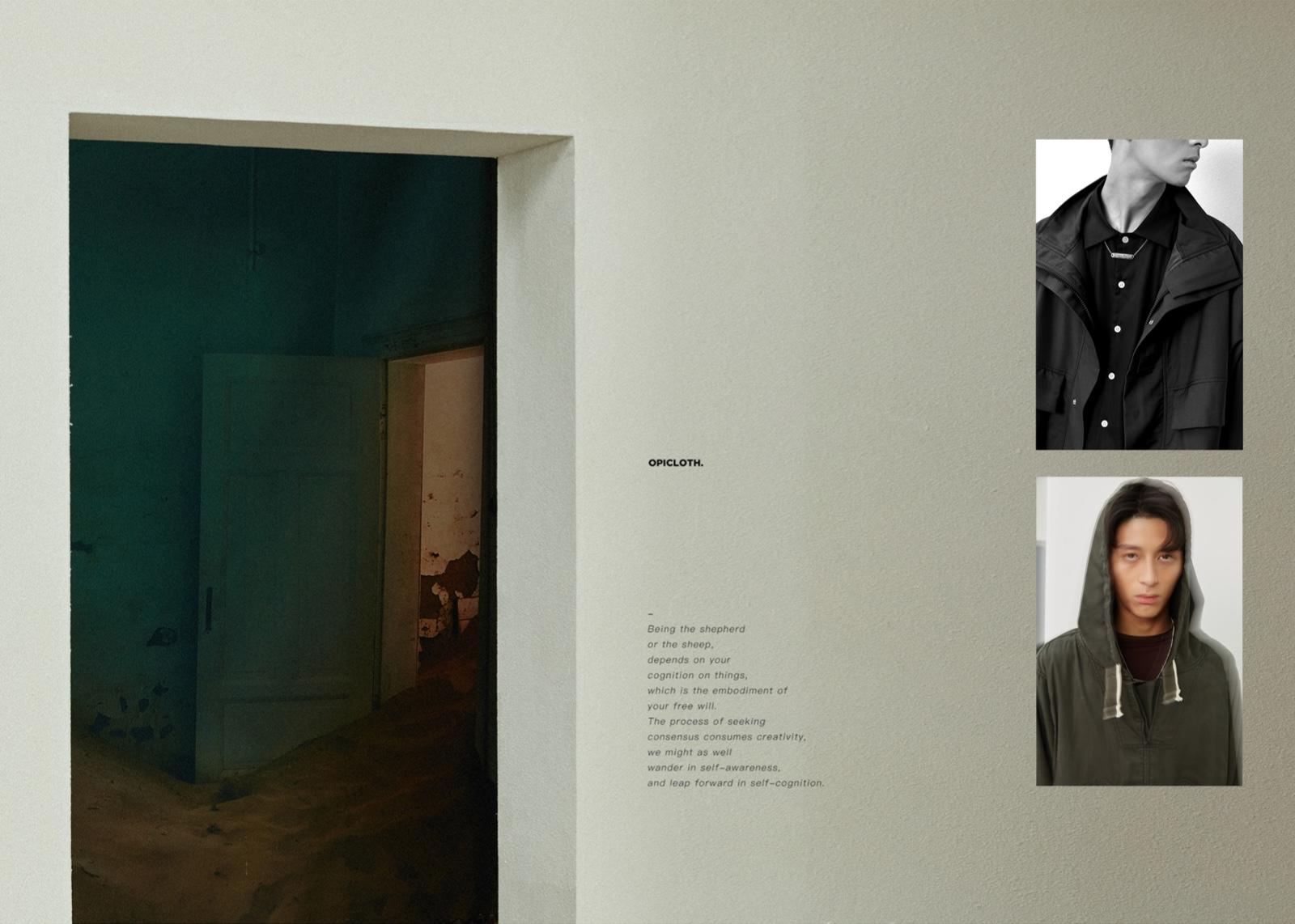 此前OPICLOTH打来的2019早春系列延续「THE SHEEPHERD」这一主题,通过宽大自如与简而有力的廓形来表达牧羊人内心游弋变化的过程以及对事物的认知与思辨,来体现对于自由的思考。
