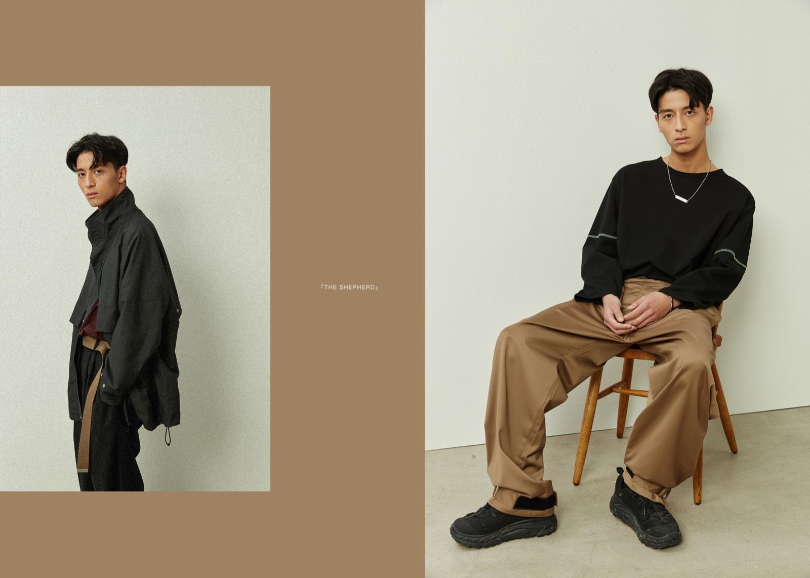 「THE SHEEPHERD」早春系列以大地色系为基调,运用了轻感十足的西服类以及天丝材质等不同的面料质感和更为协调自然的颜色组合,在置景上亦是利用空间差异,光线及颜色等丰富整体型录。单品整体挺括且色泽感佳的面料,勾勒出迷人的细腻轮廓之余,宽松版型的设定亦能表露出高级质感物料的悬垂特质,配合多重细致化的剪裁与本季度的大地色基调,着重地提升所有服饰产品的视觉统一性与触觉的感官体验。