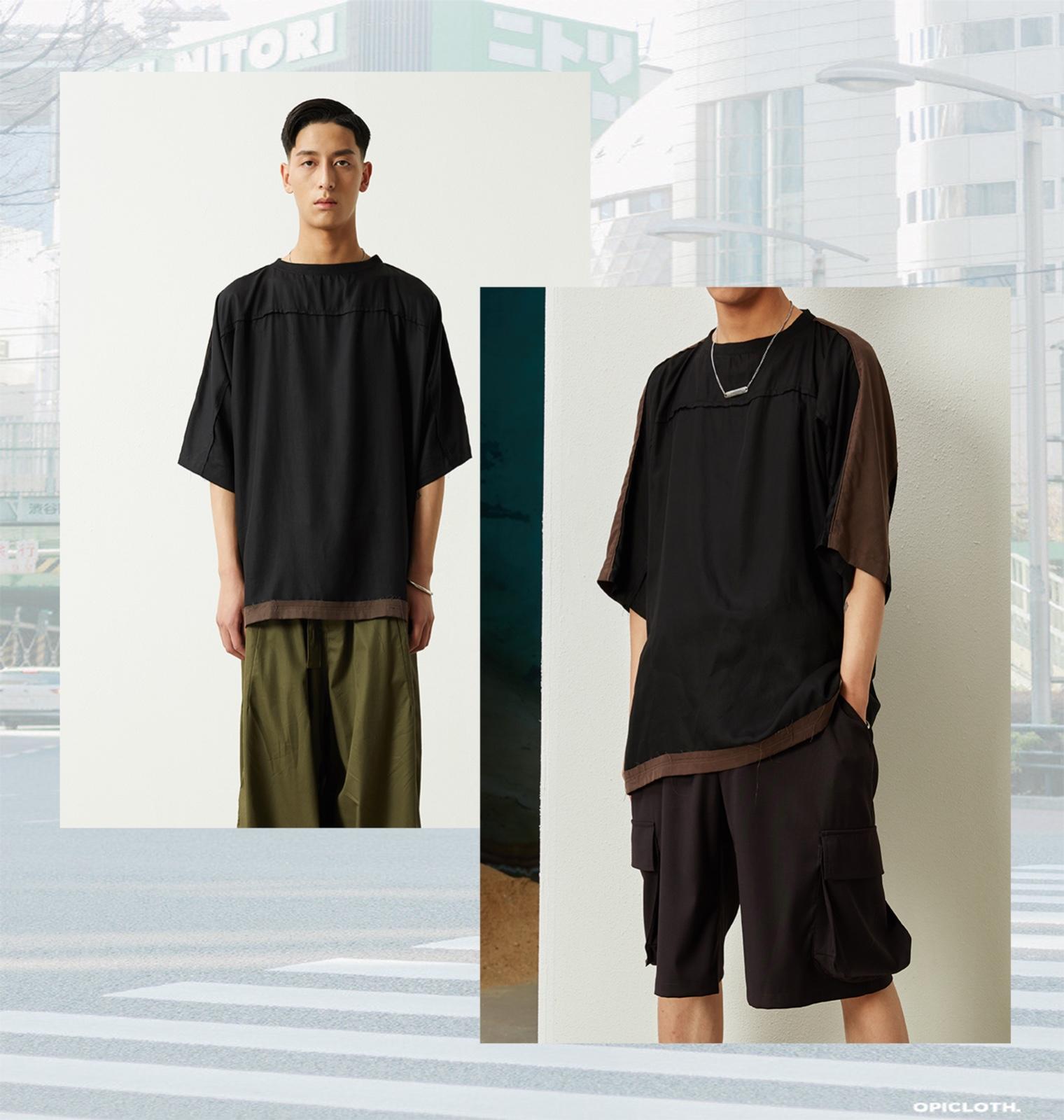 OPICLOTH 19S/S 拼缝式须边散口七分短袖