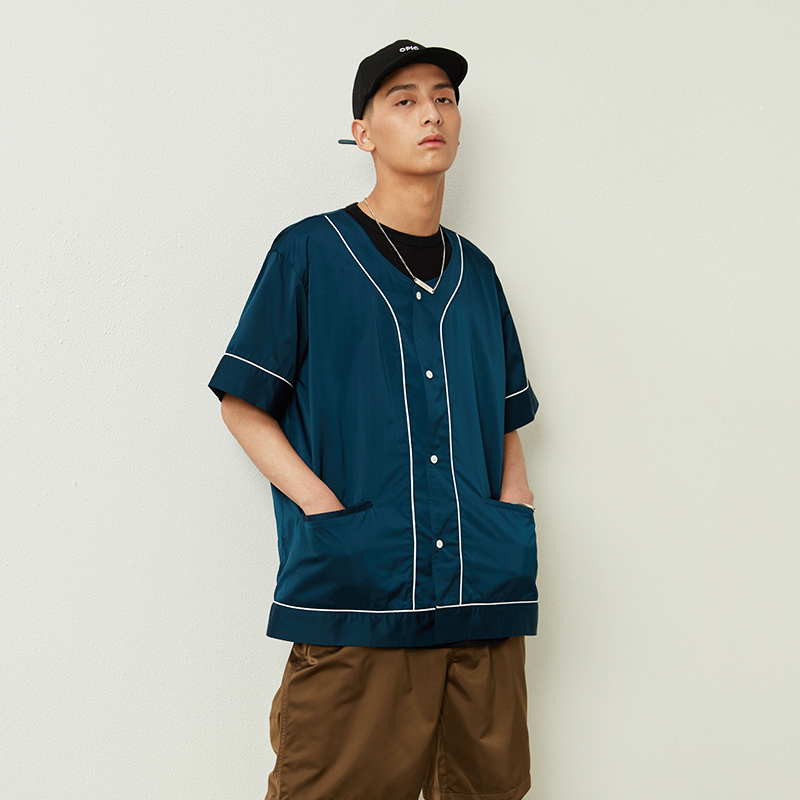 设计亮点:19S/S必入OPICLOTH单品!以更具光泽感的涤纶材质重新演绎复古棒球衫,弱化了运动感的同时带来更多穿搭上的选择。